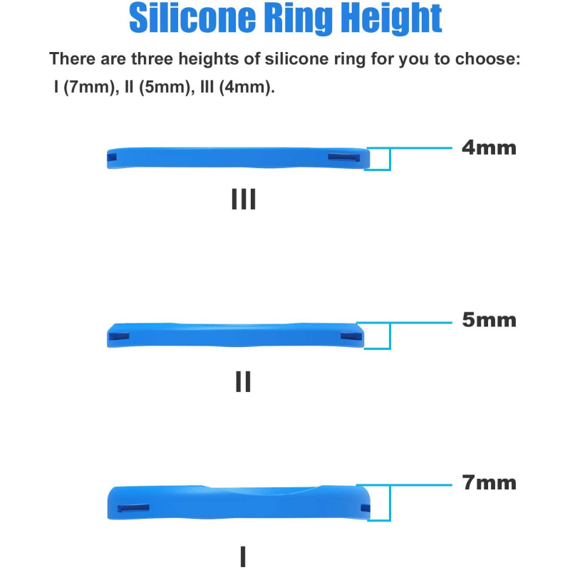 - 【Set Composition】The Set has Two pieces Lens Protection Frame and 12 pieces Silicone Rings. The 12 silicone rings are divided into three specifications, namely high, medium and low. The high ones are 7mm thick, the middle ones are 5mm thick, and the low ones are 4mm thick. Consumers can choose the gasket that suits them according to their comfort level.