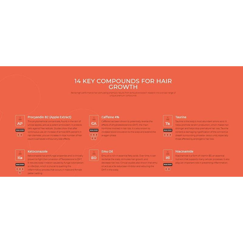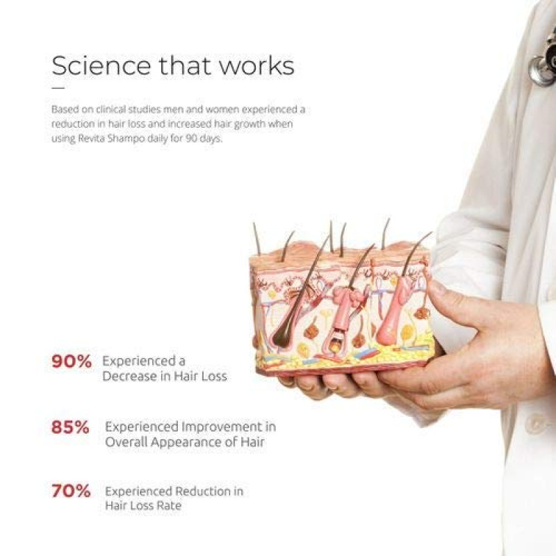 - SYNERGISTIC ACTIVE INGREDIENTS. Through the synergy of highly effective compounds, Revita maintains scalp vitality and acts against hair loss. By combining antioxidant and anti-androgen properties, plus powerful hydrating molecules, hair-growth stimulants, and amino acids, Revita delivers the most effective hair-growth stimulating shampoo available.