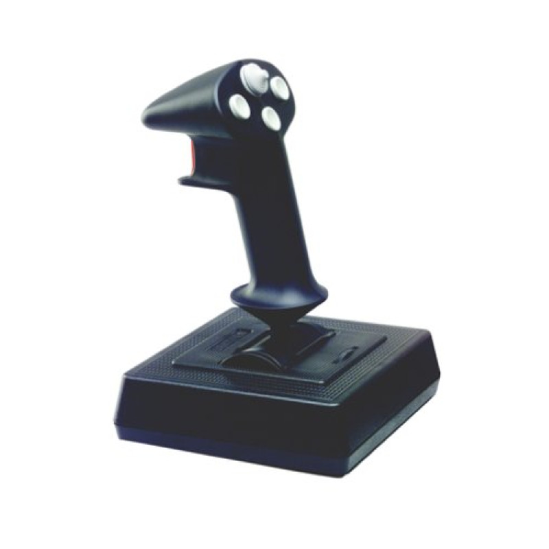 The Flightstick Pro is the legacy flagship product where it all began. Offering three axis of control, one trigger, three traditional pushbuttons and one 8-way POV, this solid, precision controller gives you just enough functions to satisfy your basic gaming needs. The CH Flightstick Pro has a large, sturdy base with non-slip rubber feet that won't move around on your desk during play. The ambidextrous handle is designed for both right and left handed use with a slide throttle wheel on the left side of the base for rudder. Dual rotary trim wheels on the base give you precise adjustment of ailerons and elevator and as with all CH Products’ devices, the Flightstick Pro is built to last through generations of enjoyment.