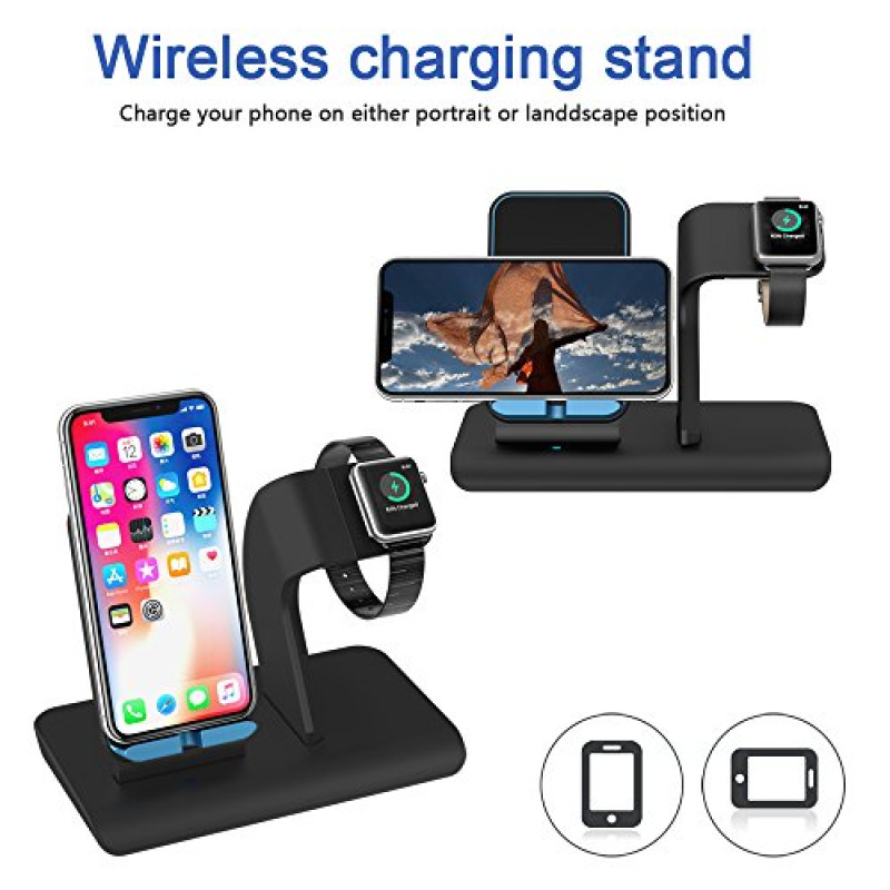 ✌【iPhone Charger Dock Stand】: Use your Qi-enabled iPhoneX/8/8plus and some Samsung galaxy Series on the left dock and charge your phone vertically or horizontally on qi wireless charger stand. Anti-slid mat keeps your iPhone and iwatch stable as they are. You can enjoy reading, watching movie freely.