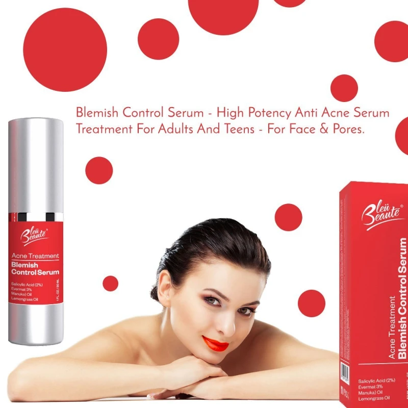 Acne is defined as an eruption of the face, a disorder of the skin caused by inflammation of the skin glands and hair follicles. In reality, Acne creates a hostile environment on the skin. Our simple, yet effective formula of anti-inflammatory, anti-microbial and anti-bacterial ingredients combined with Salicylic Acid, takes over that hostile skin providing a more clear and balanced complexion. Bleu Beaute Anti Acne Serum is a potent formula of anti-inflammatory, anti-microbial and anti-bacterial ingredients combined with 2% Salicylic Acid which provides exfoliation helping pore clogging and smoothing fine lines/wrinkles. Serum fights acne and shrinks the size of pores and can be used as a pore minimizer as well. Our specialized treatment is packed with key ingredients to help combat the sources of break-outs and blemishes. This acne control serum is for men, women, teens, and for all skin types. Apply the Serum to clean skin once or twice daily. Follow with Bleu Beaute moisturizer and/or sun protectant. Sensitivity Test for a New User. Apply product sparingly to one or two small a��ected areas during the first 3 days. If no discomfort occurs, follow the directions. SUNBURN ALERT: This product contains a Beta Hydroxy Acid (BHA). Ingredients: Evermat 3% – reduces pore size, skin shine and a reduction in sebum flow after 28 day Manuka Oil - similar to tea tree, provides antibacterial, anti-microbial, anti-fungal and antioxidant activities to protect and restore the ski Lemongrass Oil – Antioxidant, antiviral, anti-bacterial, aroma-therapeutic Aqua (Water), Alcohol Denat., Glycerin, Butylene Glycol, 2% Salicylic Acid, Polysorbate 20, Leptospermum Scoparium (Manuka) Branch/Leaf Oil, Enantia Chlorantha Bark Extract, Oleanolic Acid, Cymbopogon Schoenanthus (Lemongrass) Oil*, Polyglyceryl-4 Caprate, Phytic Acid, Xanthan Gum, Trisodium Ethylenediamine Disuccinate, Sodium Hydroxide *Certifed Organic Ingredient