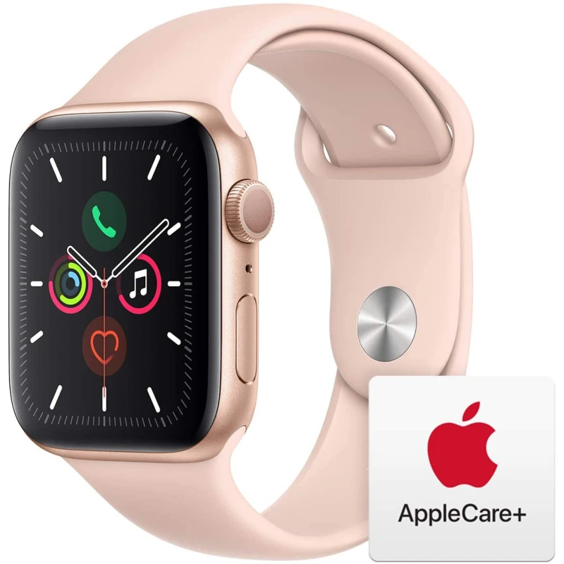 Apple Watch Series 5 (GPS, 44mm) - Gold Aluminum Case with Pink Sport Band with AppleCare+ Bundle