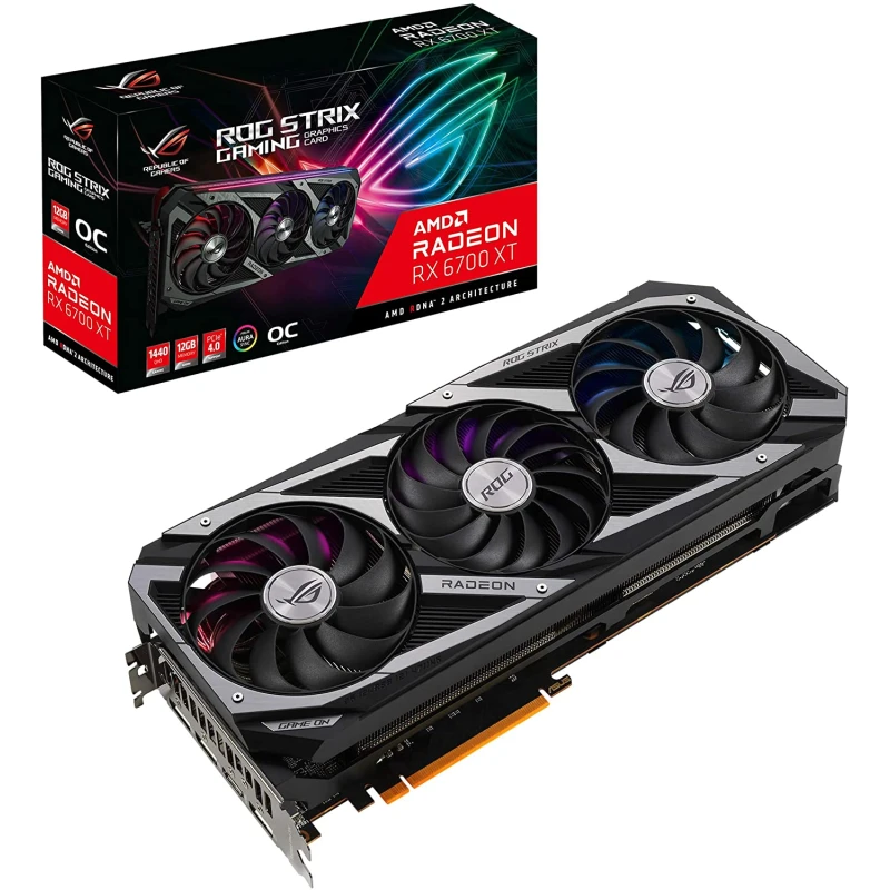 ASUS ROG Strix AMD Radeon RX 6700 XT OC Edition Gaming Graphics Card AMD RDNA 2, PCIe 4.0, 12GB GDDR6, HDMI 2.1, DisplayPort 1.4a, Axial-tech Fan Design, 2.9-Slot, Super Alloy Power II, GPU Tweak II