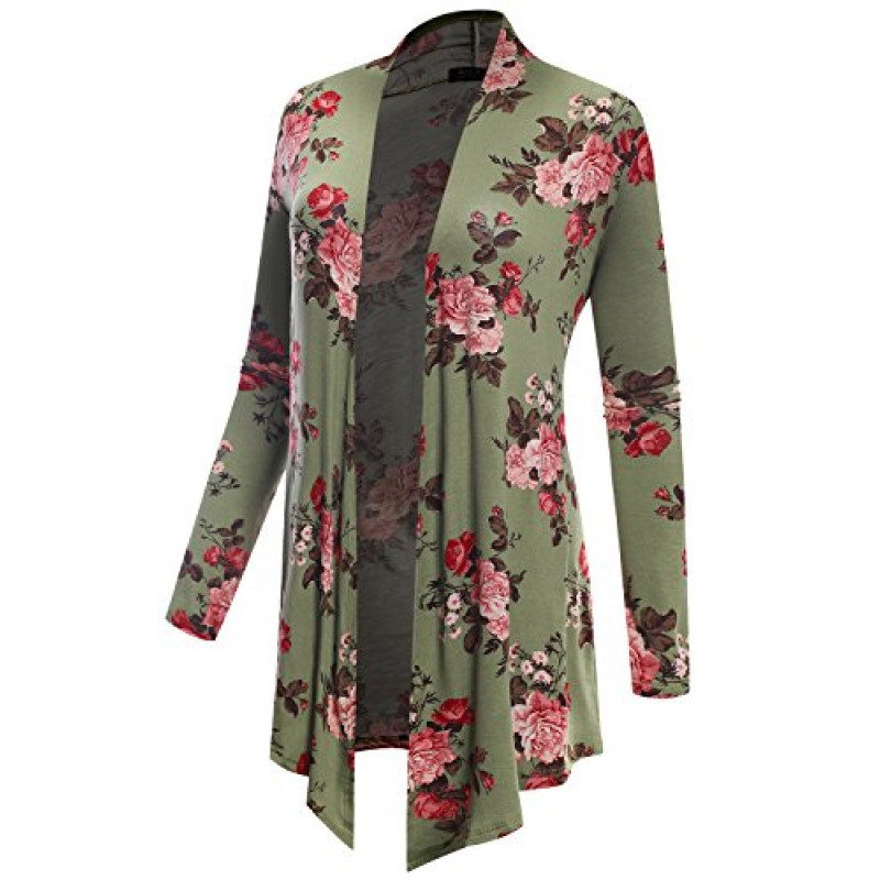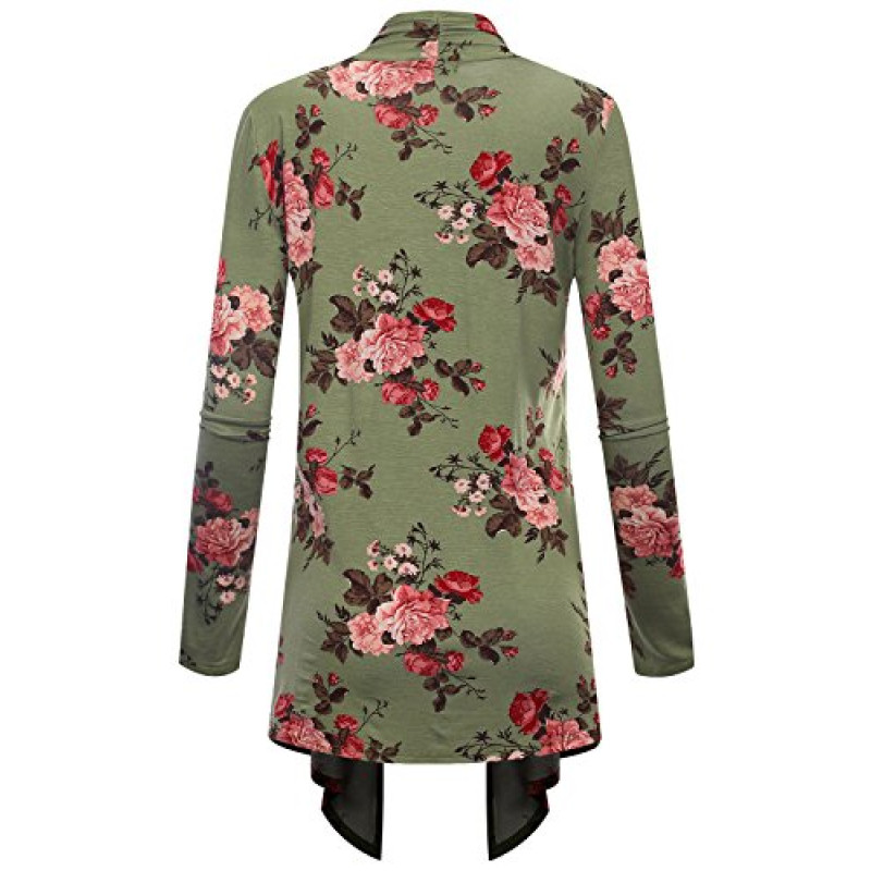 BH B.I.L.Y USA Women's Open Front Drape Hem Lightweight Cardigan Floral Print 6532 Sage XX-Large