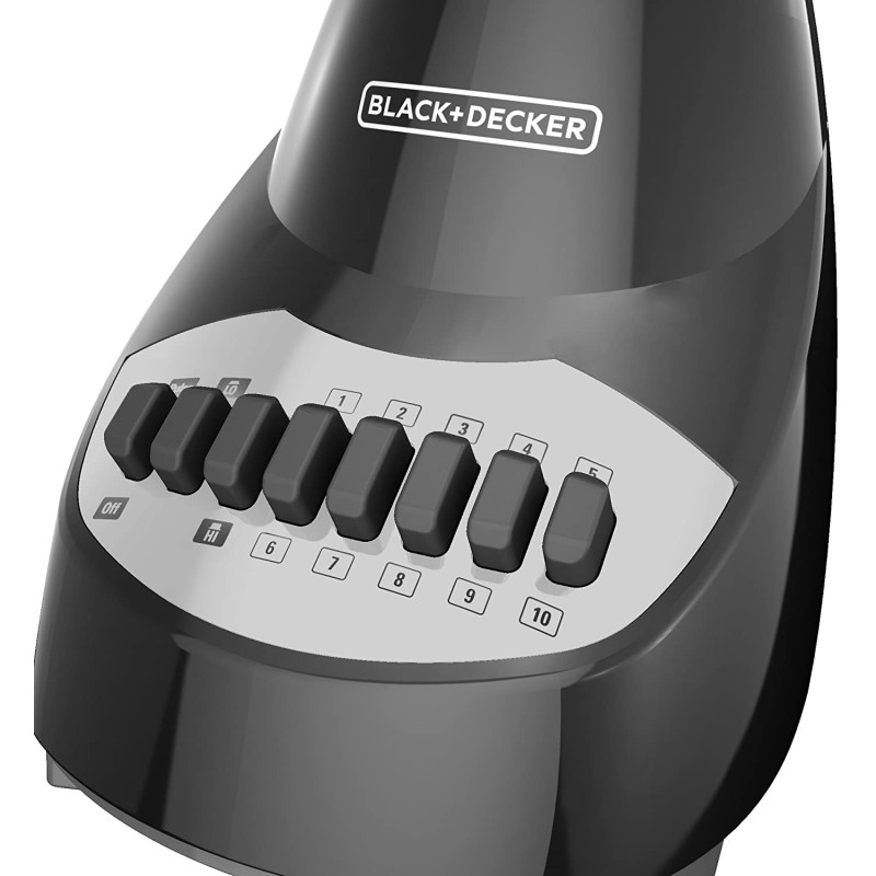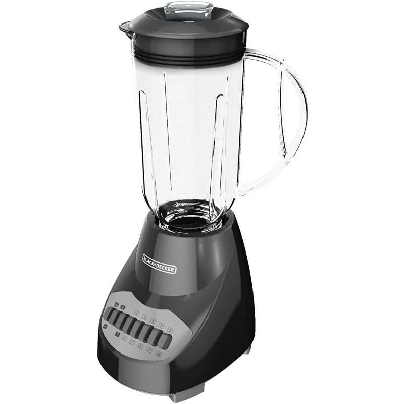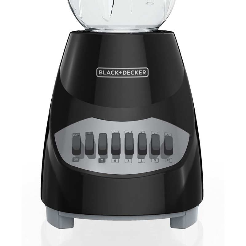 The BLACK + DECKER 10-Speed Blender is a kitchen classic. With 10 speeds and a pulse control, operation is simple and efficient. The lightweight plastic 5-cup (40-oz.) jar is easy to pour from and holds several servings of your favorite soups, smoothies, and more! Plus, cleanup is a breeze thanks to the dishwasher-safe removable parts.
