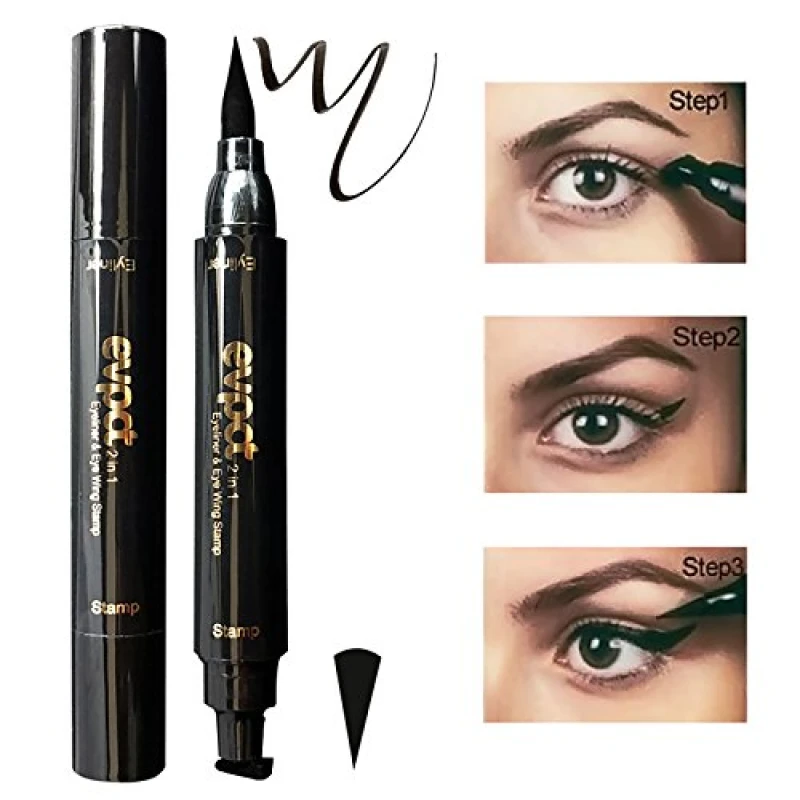 There is no need to struggle with trying to create the perfect winged eyeliner anymore.Our specially designed 2 in 1 liquid eyeliner pen and winged stamp does double duty in drawing clean and precise lines as well as creating beautiful cat eyes and winged looks.