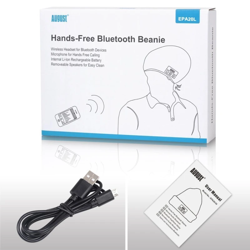 Style and Tech combine, your wise choice for winterKeep your head and tunes warm this winter with the new August Bluetooth Hat. The EPA20 allows you to listen to your music without having to wear additional headphones. This original stereo headset brings you great sound quality, style and comfort. Remote control for Music, Volume and Calls