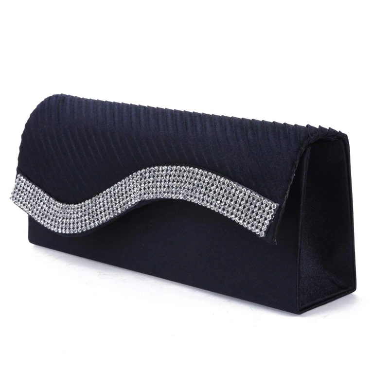 Buy Damara Womens Pleated Satin Flap Crystal Clutch Evening Bag Online in UAE