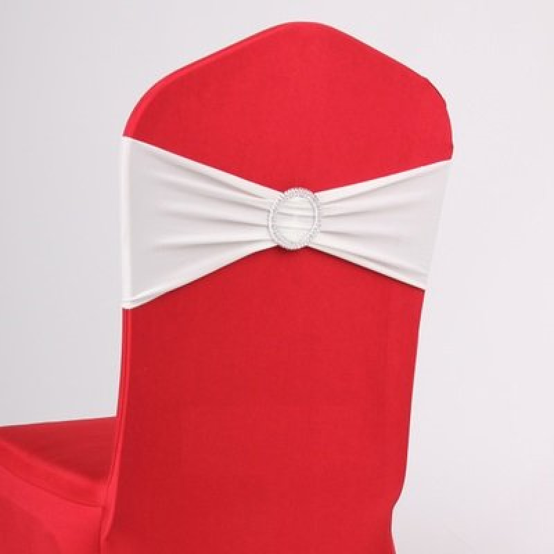 50PCS Spandex Chair Sashes Bows Elastic Chair Bands with Buckle Slider Sashes Bows for Wedding Decorations sy66 (White)
