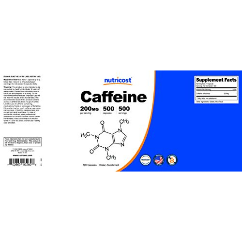 Nutricost Caffeine capsules provide you with 200mg of high quality caffeine anhydrous per capsule. Nutricost strives to provide the highest quality supplements at the best prices. Overdosing on caffeine can be extremely dangerous. Do not exceed 2 capsules per day.Product Feature