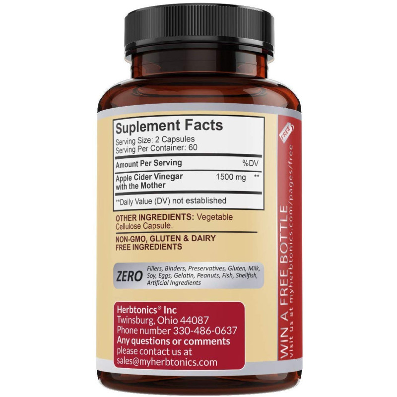 Herbtonics Apple Cider Vinegar 1500 mg High Strength (per serving) 120 Vegetarian Capsules 15X More Absorbed