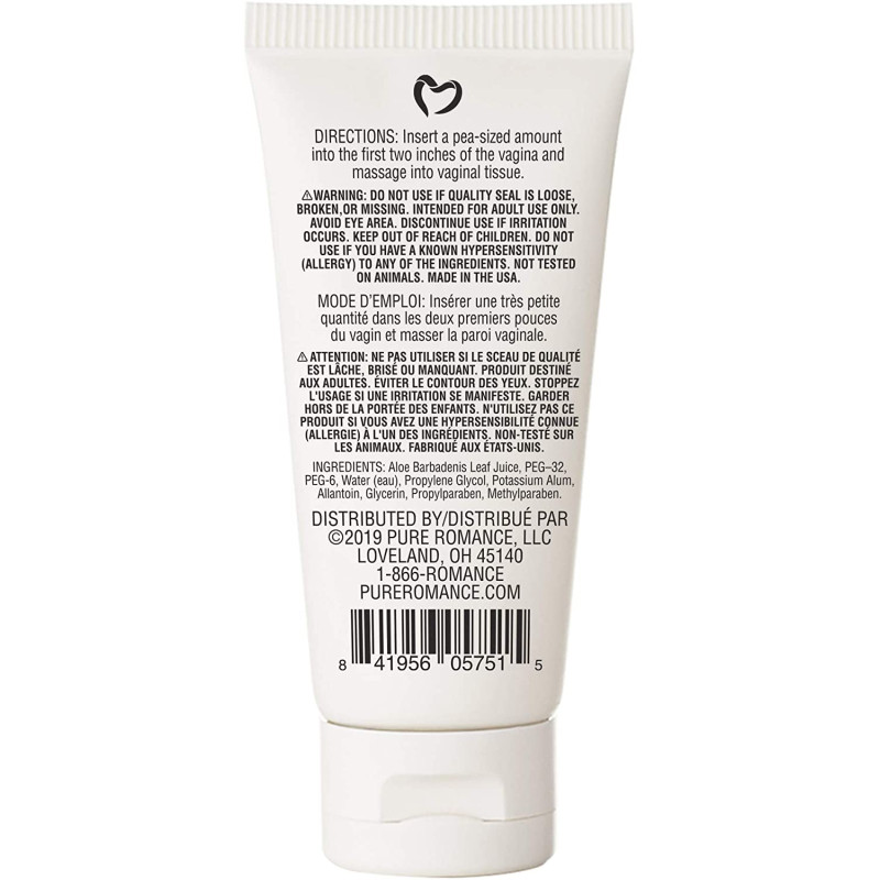 Directions: Squeeze a pea-sized amount onto your fingertip, and divide it into two. Apply half of the cream as far into the vagina as possible. Pull/wipe it down the vaginal walls to spread the cream to the vaginal opening. Apply the other half just inside the vaginal opening. If you can't reach very far into the vagina or are uncomfortable touching yourself, you can put a pea-sized amount of the cream on the top of a clean, empty tampon applicator and use that to apply it to your vaginal walls. Allow up to 30 minutes after application for it to take effect. Insert a pea-sized amount into the first two inches of the vagina and massage into vaginal tissue.