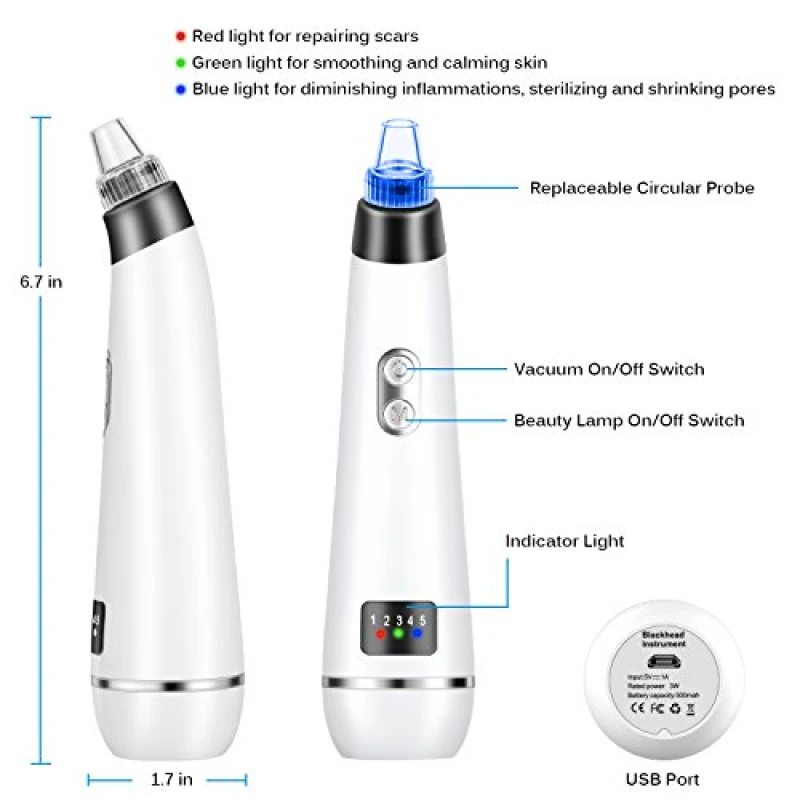 【Safety and Certification】Made of Eco-friendly ABS material, adopt smart vacuum suction technology, not only keep suction power within a safe, non-toxic and painless condition, but also can easily and quickly remove the stubborn blackhead if you use the stronger power. And Obtain the authoritative FDA,FCC, CE, ROHS certificated to ensure you feel assured during using our pore vacuum extractor.