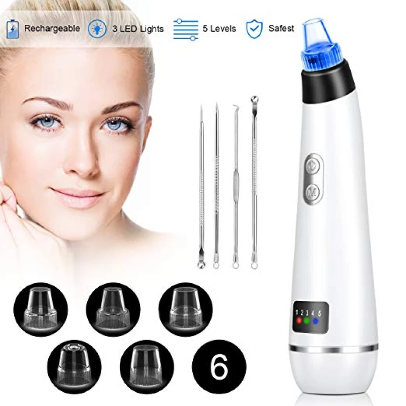 Annynice Blackhead Remover : Blackhead Vacuum Extractor can solve your all worry. 3 IPL Beauty Lights Function,5 Strong Suction Levels ,6 Replaceable Probe to remove the blackheads coarse pore ,which is suitable for all types of skin, rough skin, exfoliate dead skin and acne, and smooth your skin deeply and effectively.