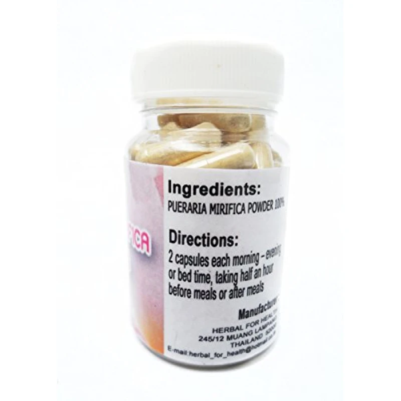 ORIGINAL PRODUCT FROM NORTH OF THAILAND ONLY 60 Caps 4 Bottle Total 240 Caps No Fillers Gluten Adulterants Starch Wheat Corn Rice No Artificial Colors or Preservatives etcVAGINAL HEALTH AND LIBIDO the best and natural way for increasing estrogen level of your body. The plant works like body estrogen in our body. Pueraria Mirifica the level of the estrogen stimulation gets increased in our body and increases the level of our collagen in the skin. As a result the increased level of collagen causes the tightening of vaginal wall and also increases the elasticity of the skin of the vagina.