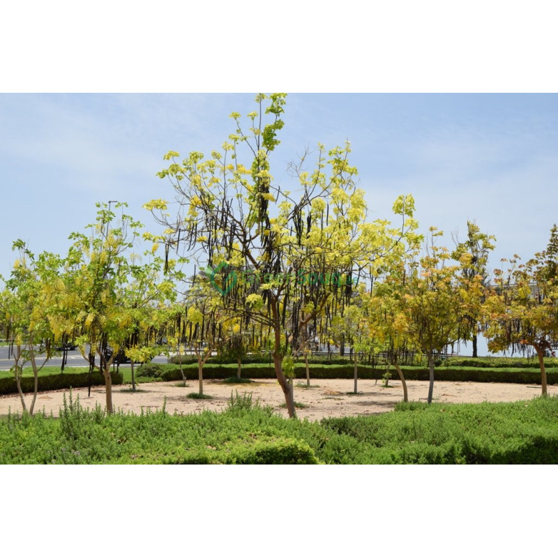 Cassia fistula is Spreading, semi-evergreen to dediduous tree producing bright green leaves, to 60cm long, each with 6-16 ovate leaflets; the older leaves are shed in winter or during periods of drought. Fragrant, bright yellow fowers, to 4cm across, are borne freely in pendent racemes, 20-40cm long. Height 8-12m, Spread 3-5m. Native of S.E. Asia, Pacific Islands, Central and South America.