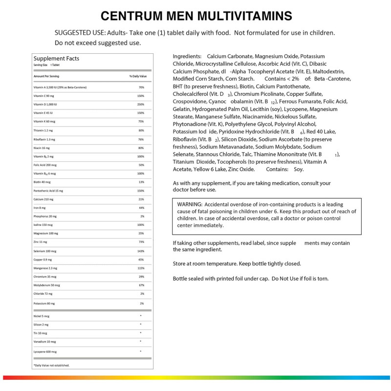 Centrum Men is formulated to support energy, immunity and the metabolism of men under age 50 (2).* Support your healthy routine with the B Vitamins, antioxidants and essential nutrients in Centrum Men.