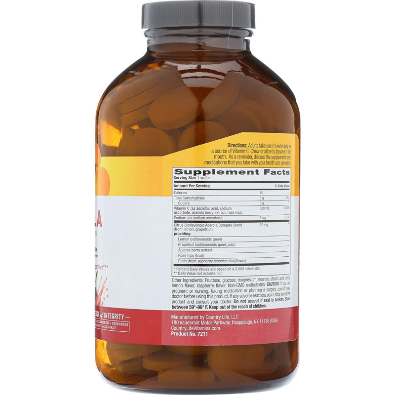 - SUPERFOOD ANTIOXIDANTS - Acerola is a fruit that is a natural source of Vitamin C. Country Life's Chewable Acerola Complex contains a concentrated acerola berry extract and also includes a multispectral citrus bioflavonoid acerola complex blend, plus Vitamin C for extra antioxidant support, all in a delicious berry flavored chewable wafer.