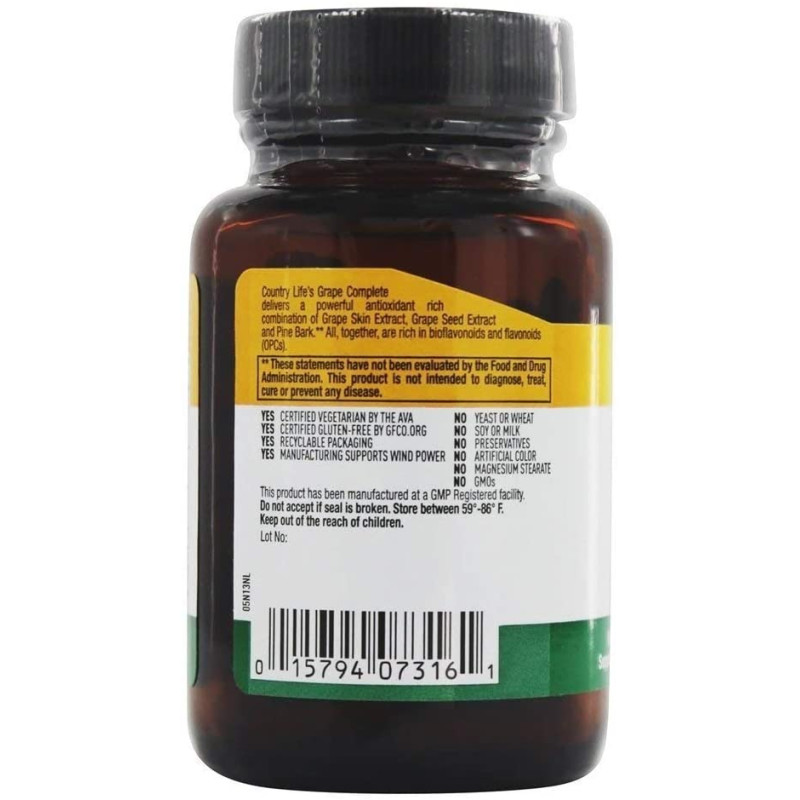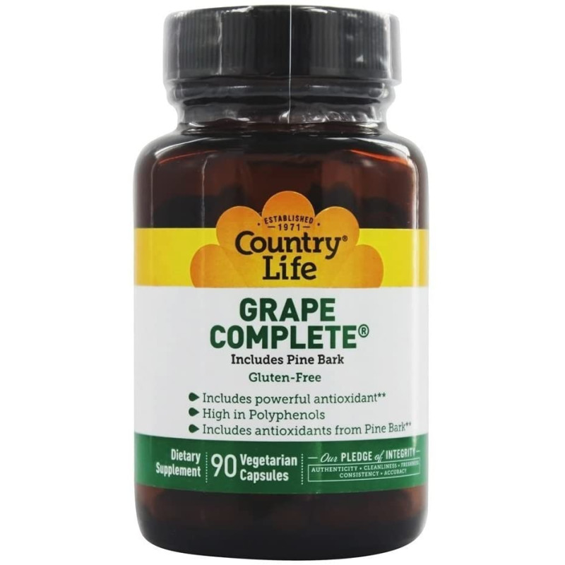 - POWERFUL ANTIOXIDANTS - Country Life’s Grape Complete delivers a powerful antioxidant rich combination of Grape Skin Extract, Grape Seed Extract and Pine Bark.