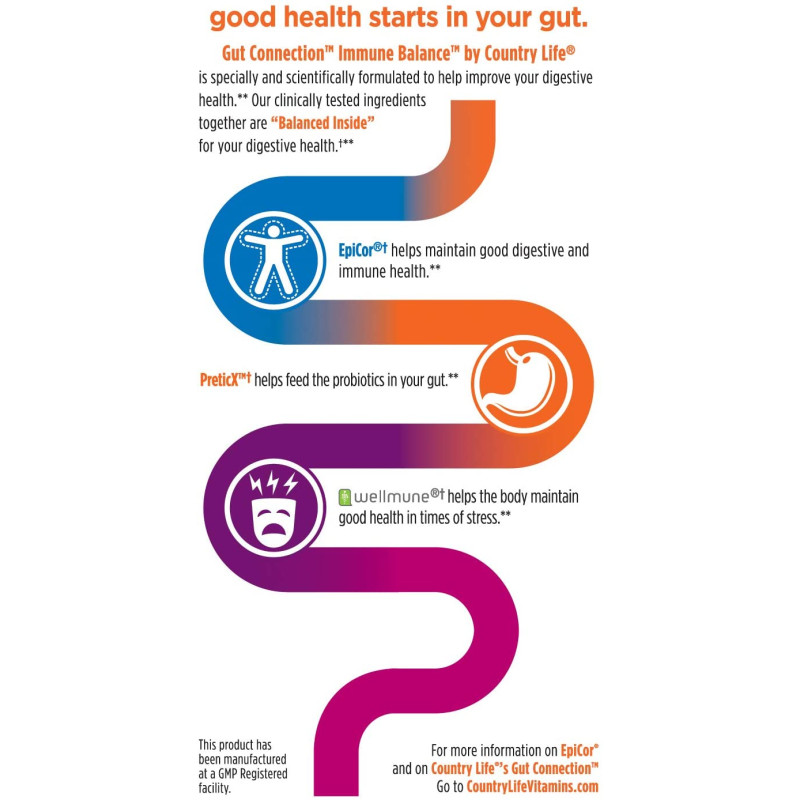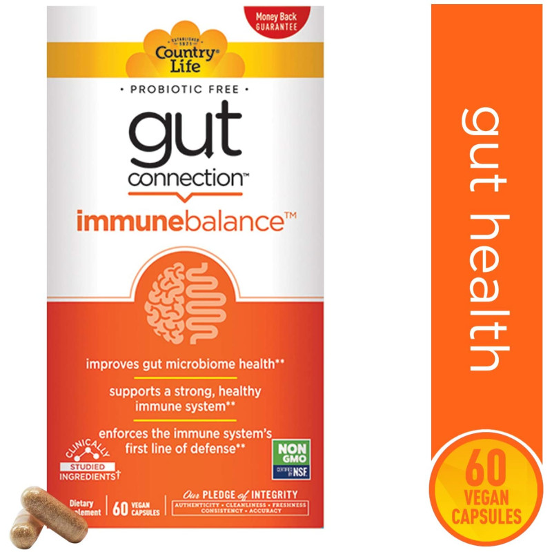 Country Life Gut Connection Immune Balance - Probiotic-Free - Promotes Improved Gut Microbiome Health & Gut-Brain Balance - Supports Strong Healthy Immune System - Gluten-Free, Vegan - 60 Vegan Caps