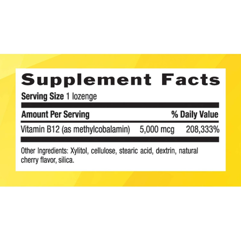 Vitamin B12 (as methylcobalamin) Amt Per Serving:5000 mcg % Daily Value :83,333%,,Other Ingredients: Xylitol, cellulose, dextrin, L-leucine, natural flavors, silica.