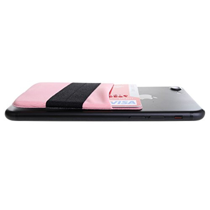 [Double Secure] Lid Credit Card Holder Stick on Wallet Discreet ID Holder Lycra Spandex Card Sleeves for Smartphones, iPhone Galaxy Cell Phone Wallet Case 3M Adhesive (Band Rose Gold)