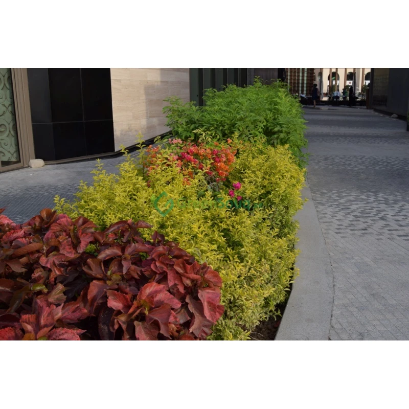Duranta repens is Erect to spreading, bushy shrub or small tree with ovate to obovate, sparsely to boldly toothed, usually rich green leaves, to 7cm long. Axillary, pendent panicles, 10-15cm long, of small, blue, lilac-blue, purple, or white flowers, are produced mainly in summer, followed by yellow fruit, to 1cm across. Suitable for outdoors in UAE, Dubai.