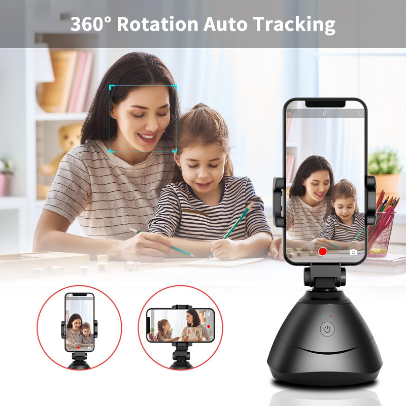 - 360° Auto Facial Tracking Smart Holder Smart Shooting Mount: 360° all-round auto face tracking following the movement of your face, face tracking support up-down tilt 30° flip, providing stable shooting and video quality. Very Sturdy for using, don't worry your phone will be easy to lost anywhere. The effect of gimbal stabilizer for smartphone static tracking will be more perfect than dynamic.