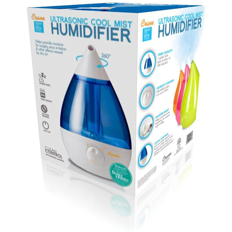 Crane's Iconic Drop Shape Cool Mist Humidifier is the best solution for natural relief for symptoms caused by dry air, allergies, or cold and flu - especially for busy families. With its large 1 gallon portable tank and clean control material, cleaning is so simple! Not to mention, its mist output runs for over 24 hours in a large size room, making it a functional and aesthetic addition to any room. Adding humidity to the air is a natural and effective way to help you and your family breathe better and keep from being sick!