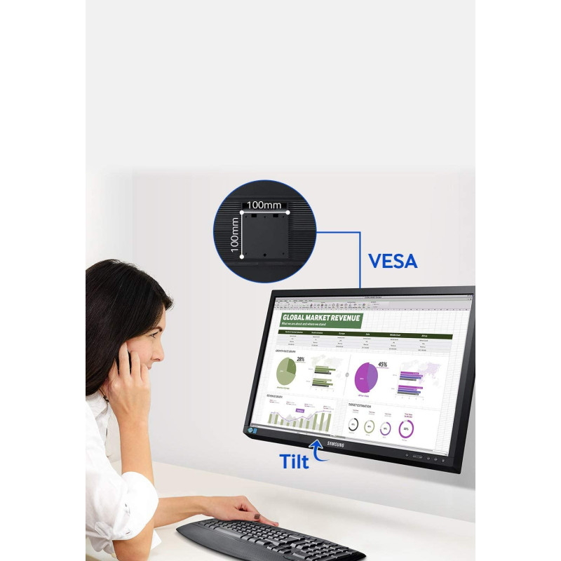 This desktop monitor is compatible with the Samsung SPU10 speaker bar (sold separately), which adds rich stereo sound without taking up an inch of desk space. And since the monitor is VESA compatible, installation on a wall or mounting arm is a breeze.