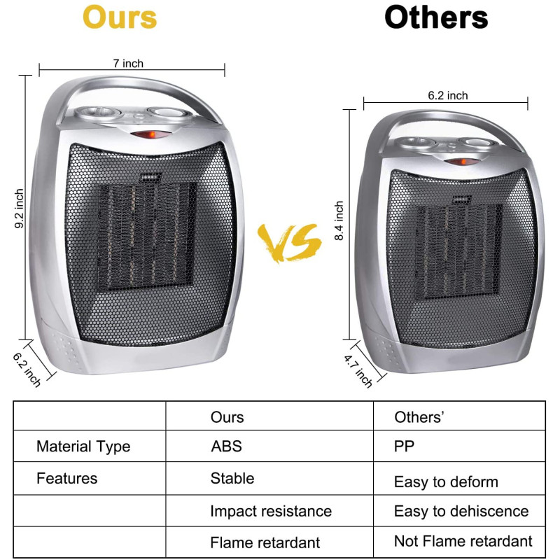 Indicator light The indicator light would keep lighting if the heater conduct power, which will remind you to unplug the heater when not use it. Thermostat The heater has thermostat that helps keep a stable temperature you set, so the heater can be warm and energy saving. Ideal Christmas Gift If you are looking for a gift for your parents, kids, lover, or friends, our compact space heater is a perfect choice. Bring him/her warm in cold weather just like your accompany!