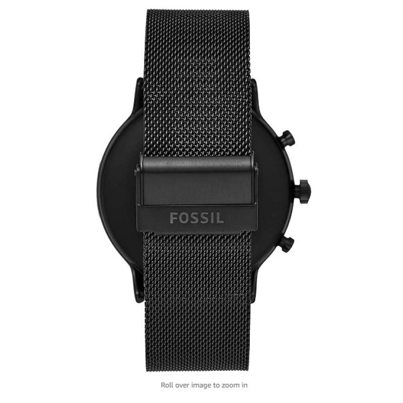 - Black silicone watch band with stainless steel buckle closure; Closure: single prong strap buckle. Fossil's innovative quick release pins make it easy to switch your watch strap.