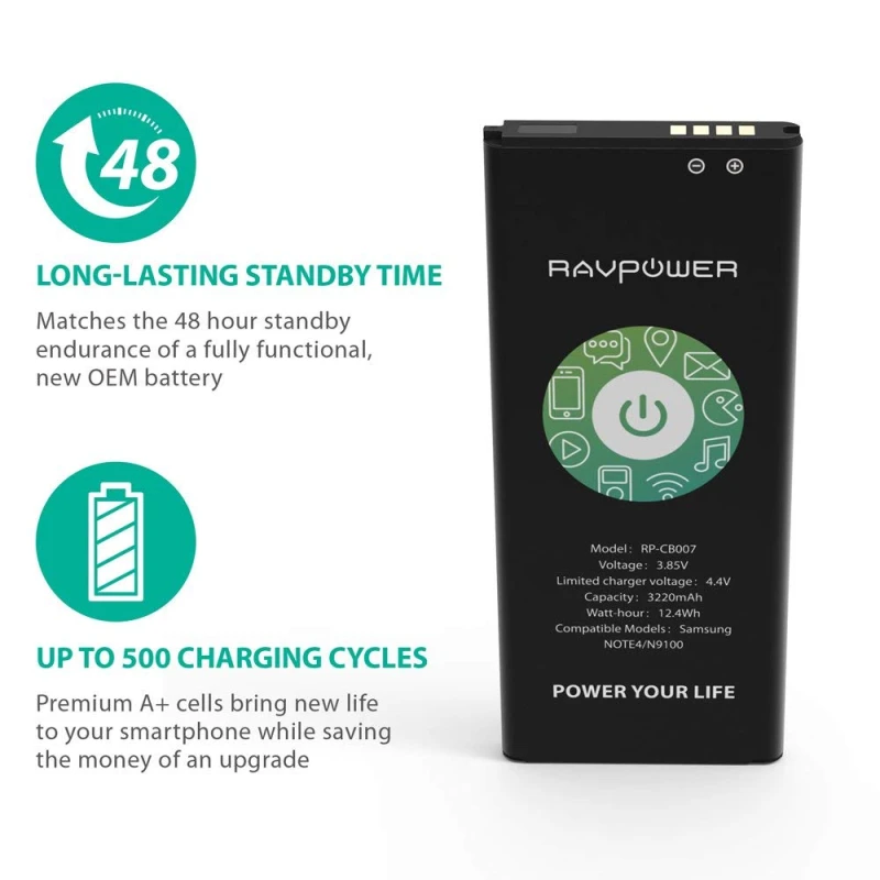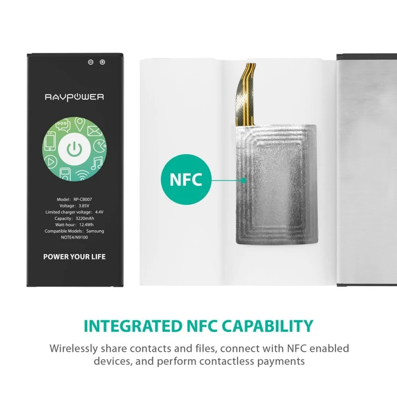 Whatever it is to perform contactless purchases via Android Pay or other third-party apps, connect with NFC compatible devices, or wirelessly share contacts and files, the RAVPower replacement battery for Galaxy Note 4 features NFC capabilities that will make your smartphone even smarter.