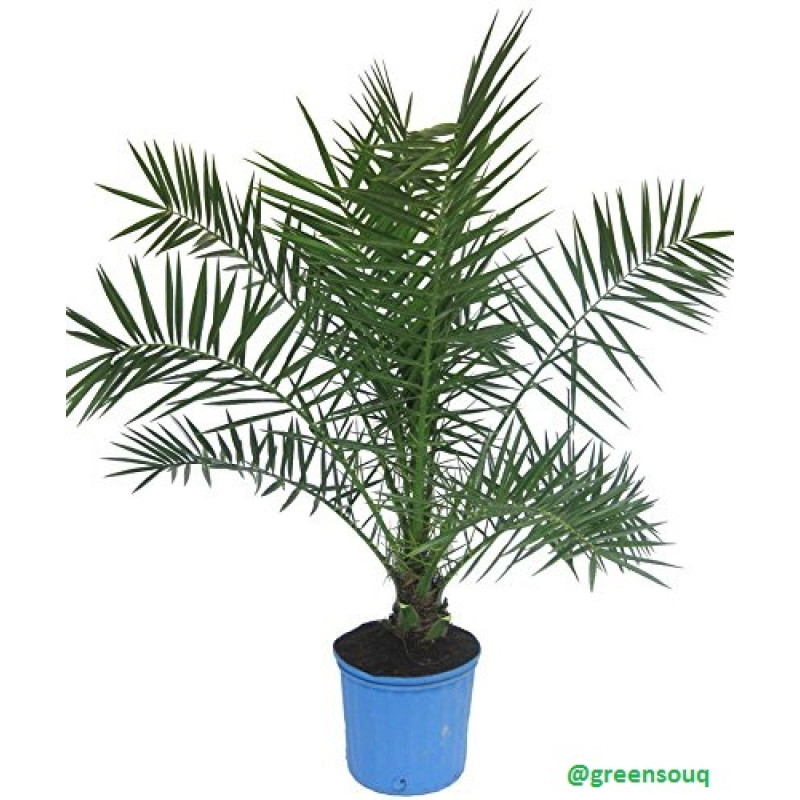 The dwarf pygmy date palm, Phoenix roebelenii, originated underneath the canopy of dense tropical forests in Africa and Asia. This helps explain why this plant does so well in the indirect light found in homes and offices. The pygmy date palm grows very slowly, reaching a maximum height indoors of 4-5 ft. (1-2 meters). This palm produces arching, graceful fronds about 3ft. or .9 meters in length with delicate leaflets on them. These fronds develop off of a stately central trunk. Like most palms, the dwarf date palm is an excellent clean air plant.