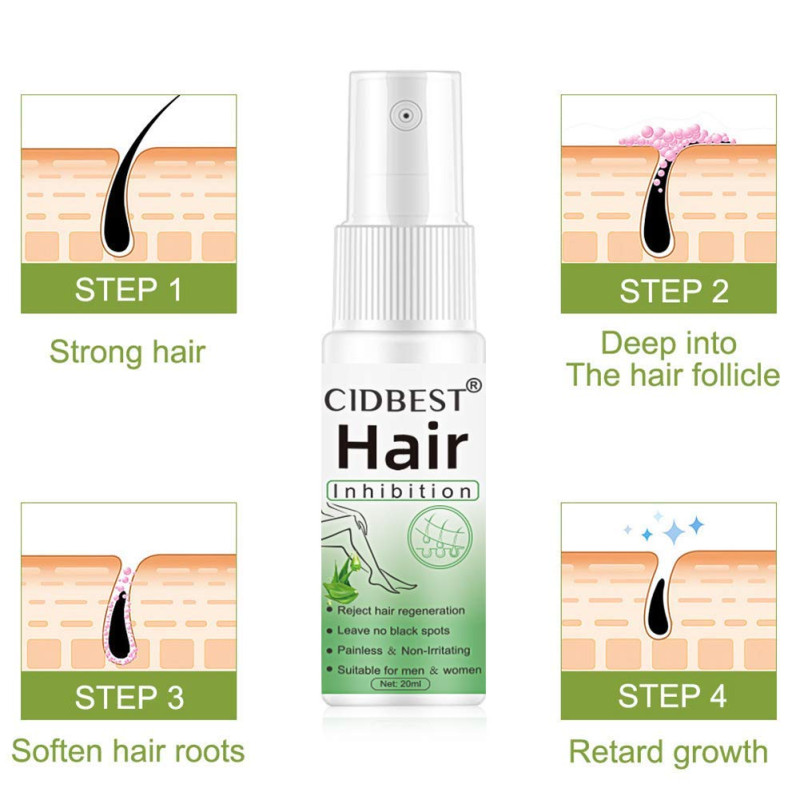 Our hair inhibitor can inhibit hair growth effectively. It is made by natural ingredients, which are safe, effective, and do not harm the skin. With regular use the active ingredients considerably reduce, weaken and delay the regrowth of hair. In 8 weeks, it will show clear result.