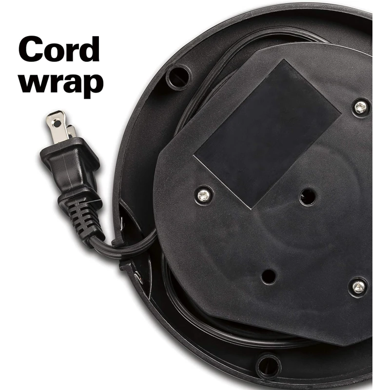 A convenient cord wrap below the base keeps the power cord neatly tucked away.