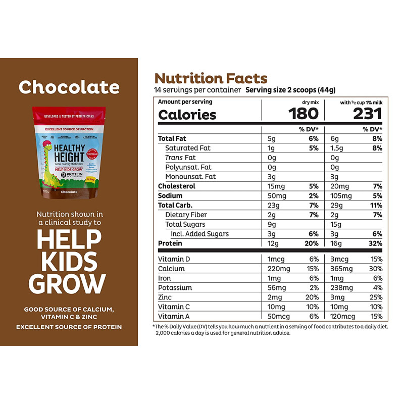 Healthy Height Kids Protein Powder (Chocolate) - Developed by Pediatricians - High in Protein Nutritional Shake to Supplement Child Growth - Contains Key Vitamins & Minerals to Gain Height & Weight