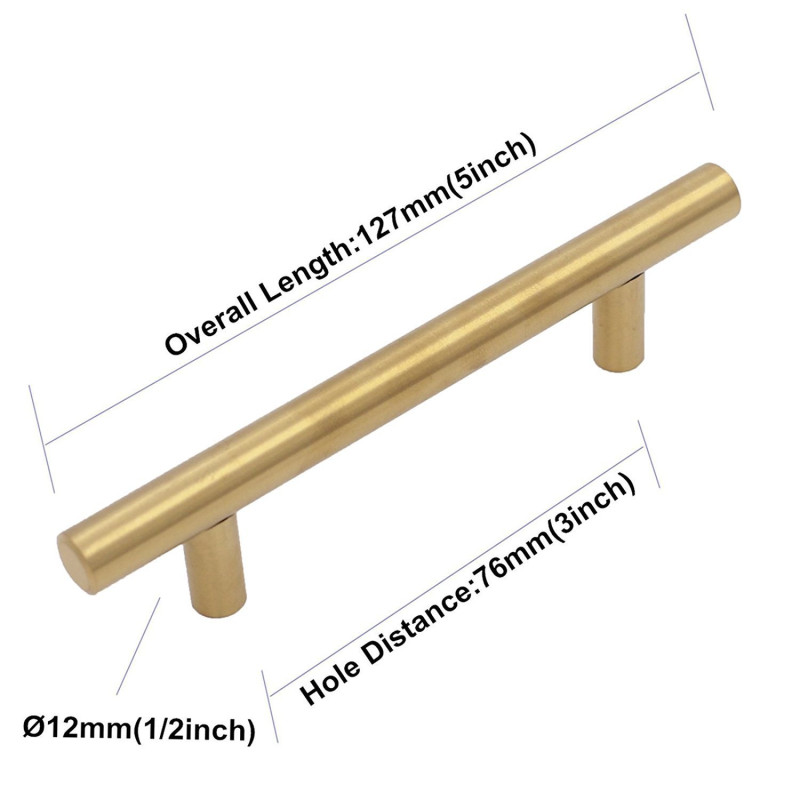 25Pack Gold Cabinet Drawer Pulls Kitchen Hardware - Goldenwarm 201GD76 Brushed Brass Cabinet Handles T Bar Door Pull Knobs 3in Hole Centers, 5in Overall Length