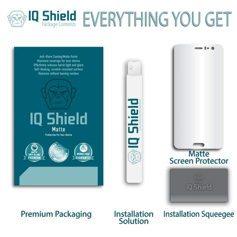 IQ Shield Matte protectors are designed to provide a special anti-glare coating that reduces glare and allow users to use their devices in brightly lit conditions.  Providing the same protection against scratches, dents and other abrasions, offered by the original IQ Shield LiQuidSkin, the thin, yet durable, anti-fingerprint film keeps your devices protected while also keeping it fully responsive.