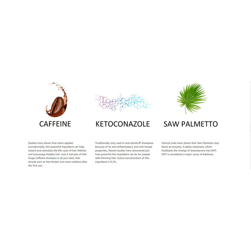 Most hair growth shampoo's just take a standard shampoo and add a couple hair supporting ingredients, resulting in those ingredients washing out before they can take affect. Hair Surge shampoo has been meticulously formulated to work as a complete delivery system, delivering the right ingredients to your hair follicles and making sure they stay there.