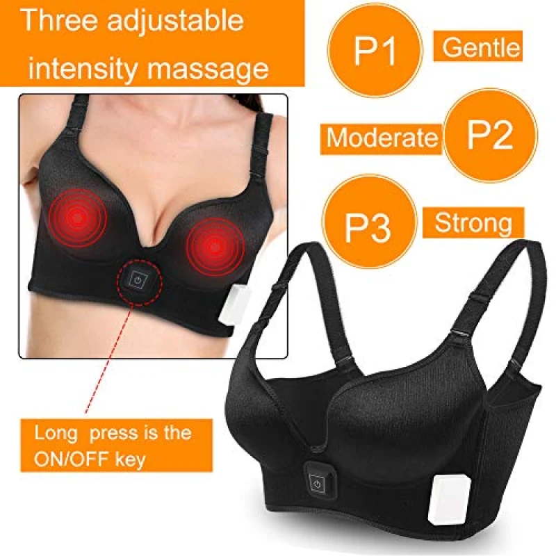 INTELLIGENT TEMPERATURE CONTROL: with 42℃ constant warming design, care breast especially when you are in menstruation,improve the female hormone, boost the breasts to grow up,breast massage resume the elasticity of the breast for women especially for the sagging breast after parturition. keeps you energetic and healthy,recover the prolapse and deformationBREAST MASSAGE: built-in 4 microcirculation movements, high frequency vibration, shaping beautiful chest, This bra massager is designed for enhancing your breast beauty