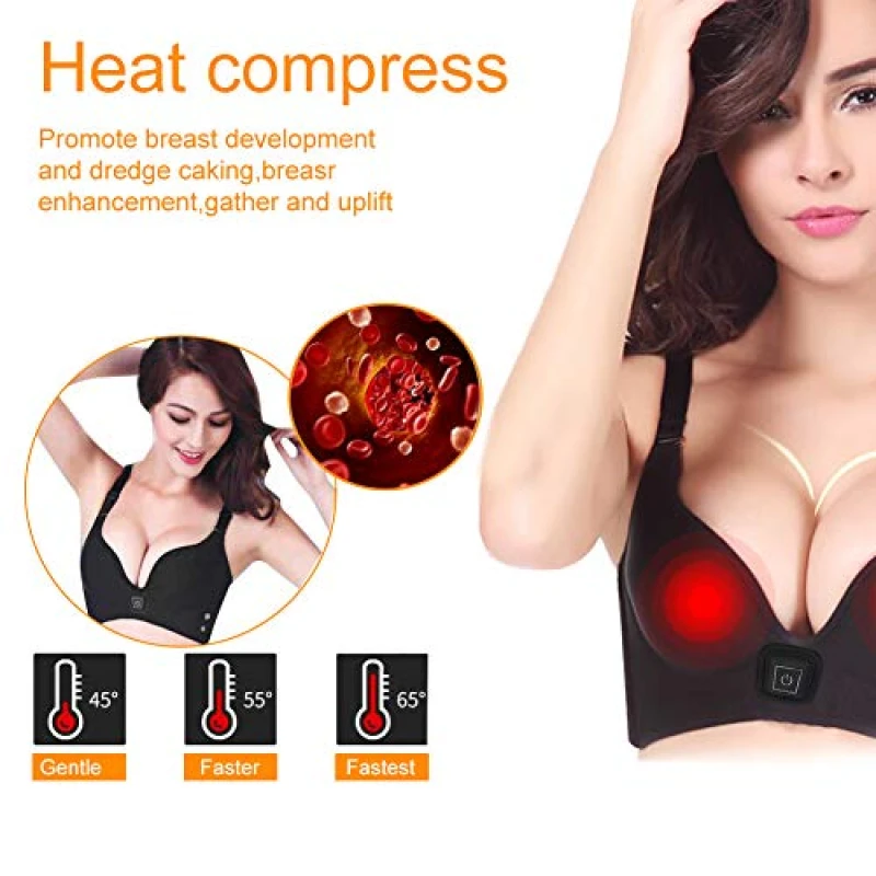 Heated Vibration Massage Bra, Adjustable 3 Speed Modes USB Rechargeable Breast Enhancement Massager Shaping Beautiful Chest For Improve Breast Health