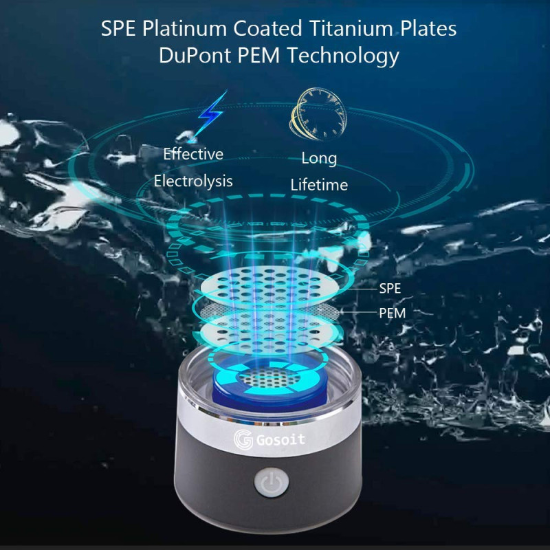 GOSOIT Hydrogen water Generator started using SPE and PEM technology for many years,and is the first company to use US Proton Membrane.Our hydrogen water bottle can keeps cells healthy and energized to control free radical damage to raise nitric oxide levels to improve heathy