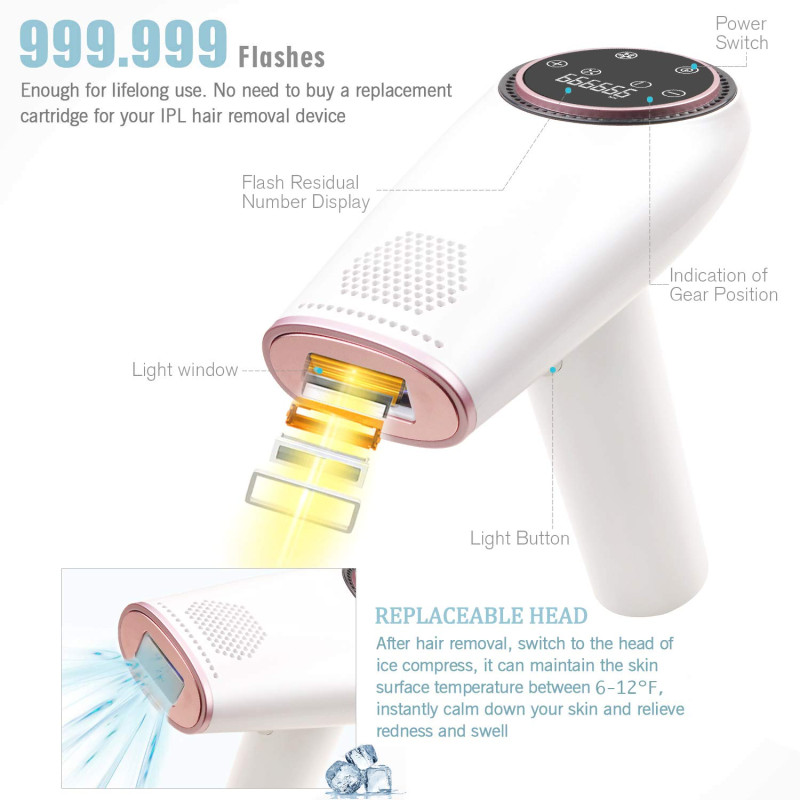 - ICE Feeling Function:This hair removal machine attaches ice compress function which can calm down the skin, relieve redness and swelling, you can enjoy doing hair removal and cooling care at the same time.