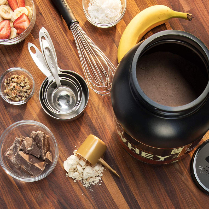 Blender: add one rounded scoop of gold standard 100% Whey™ to a blender filled with 6-8 oz of water or your favorite beverage. Blend for 20-30 seconds. Then add 1 or 2 ice cubes and blend for an additional 30 seconds. Shake up your shake: by adding fresh or frozen fruits, peanut butter, flaxseed oil, coconut and other ingredients, you can make an even more delicious shake. Stack your shake: you can make gold standard 100% Whey™ an even better post workout product by adding supplements like creatine, glutamine, BCAA, and concentrated carbohydrate powders.