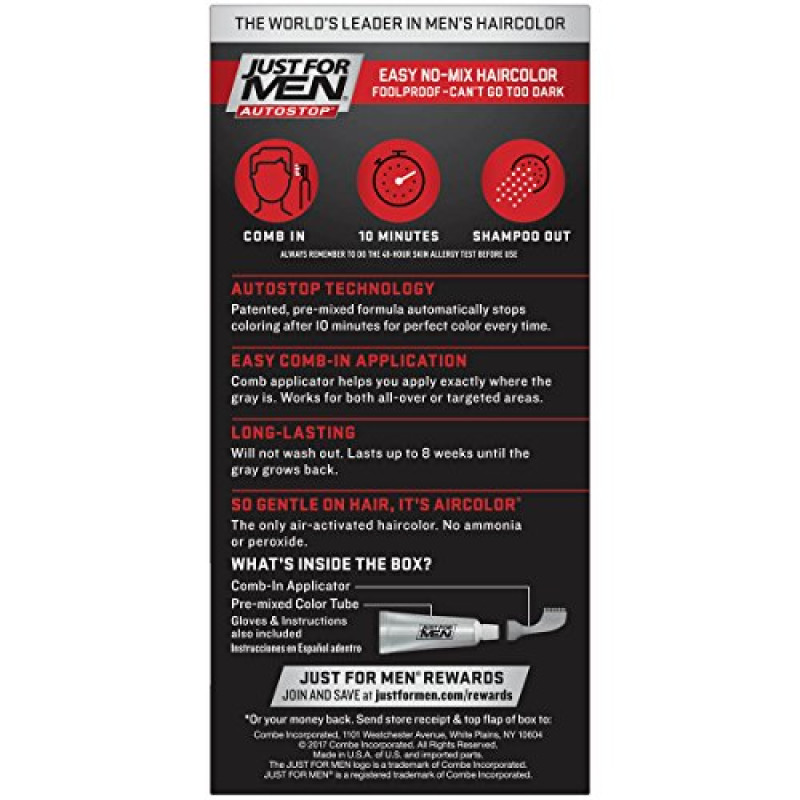 For guys who want an easy way to get rid of gray for natural looking results, there's Just For Men AutoStop. Just For Men comes in many natural looking shades, so it's easy to find the one that truly matches your natural hair color. Can't decide between two shades? Try the lighter one first. You can always go darker later. Made in the USA.Product Feature