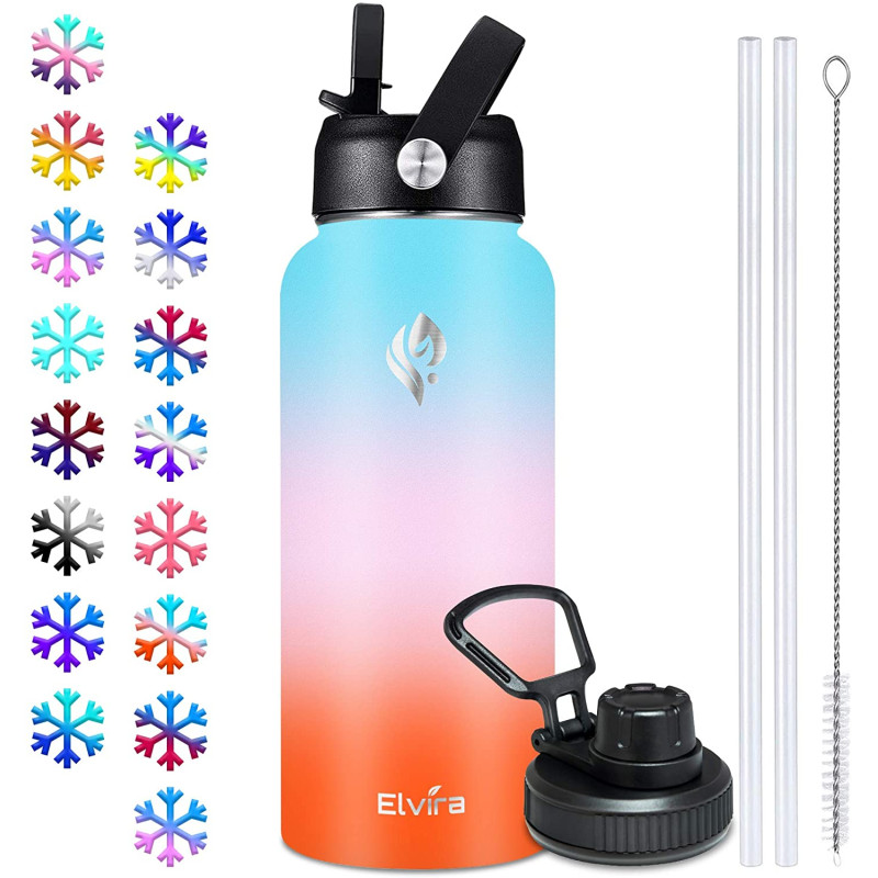 Elvira 32oz Vacuum Insulated Stainless Steel Water Bottle with Straw & Spout Lids, Double Wall Sweat-proof BPA Free to Keep Beverages Cold For 24 Hrs or Hot For 12 Hrs