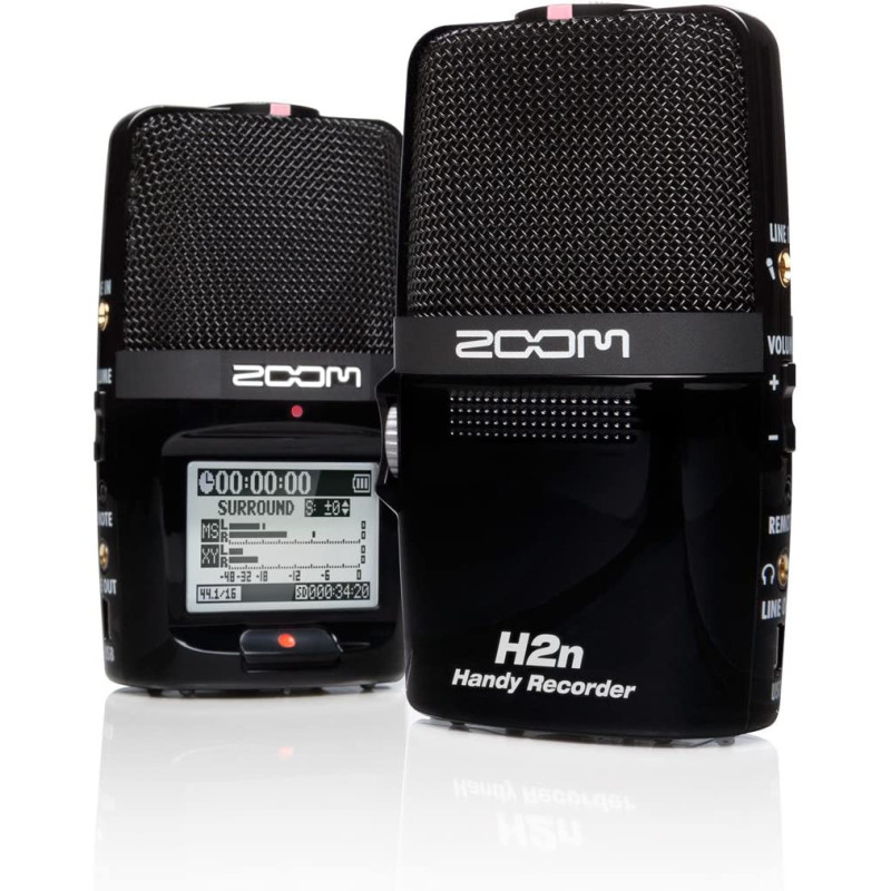 Zoom's H2n Handy Recorder is the only portable device to come with five built-in microphones and four different recording modes: X/Y, Mid-Side, 2-channel surround and 4-channel surround. The H2n can handle just about anything from live concert and rehearsal recording to location videography. It's also a great choice for generating lasting audio documents of important events like lectures, meetings, weddings, and parties.
