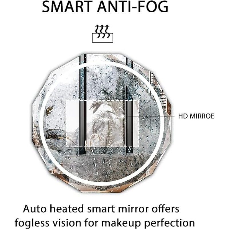 - 【Anti-Fog Function】 Led bathroom mirror for wall built-in defogging function, which ensures the lighted led mirror for the bathroom reflects an HD and clear image even after you take a steamy shower. Press the anti-fog screen touch button and turn on the anti-fog function; the wall mirror with lights will eliminate the disturbing water drops or moisture that fog your bathroom mirror before