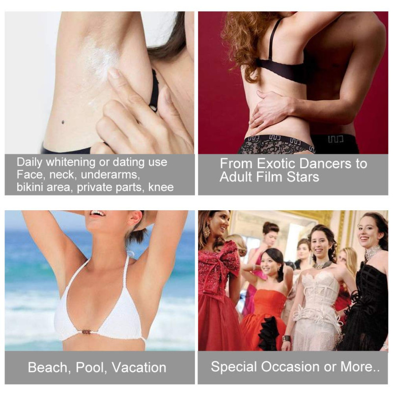 • Formulated to bring the effective whitening to the most sensitive areas of your body. modifies uneven tone between armpits and bikini body. Proven to provide fast and satisfactory whitening results. No more embarrassing darkened spots when you are at the dating, beach, pool, vacation or having a special occasion.